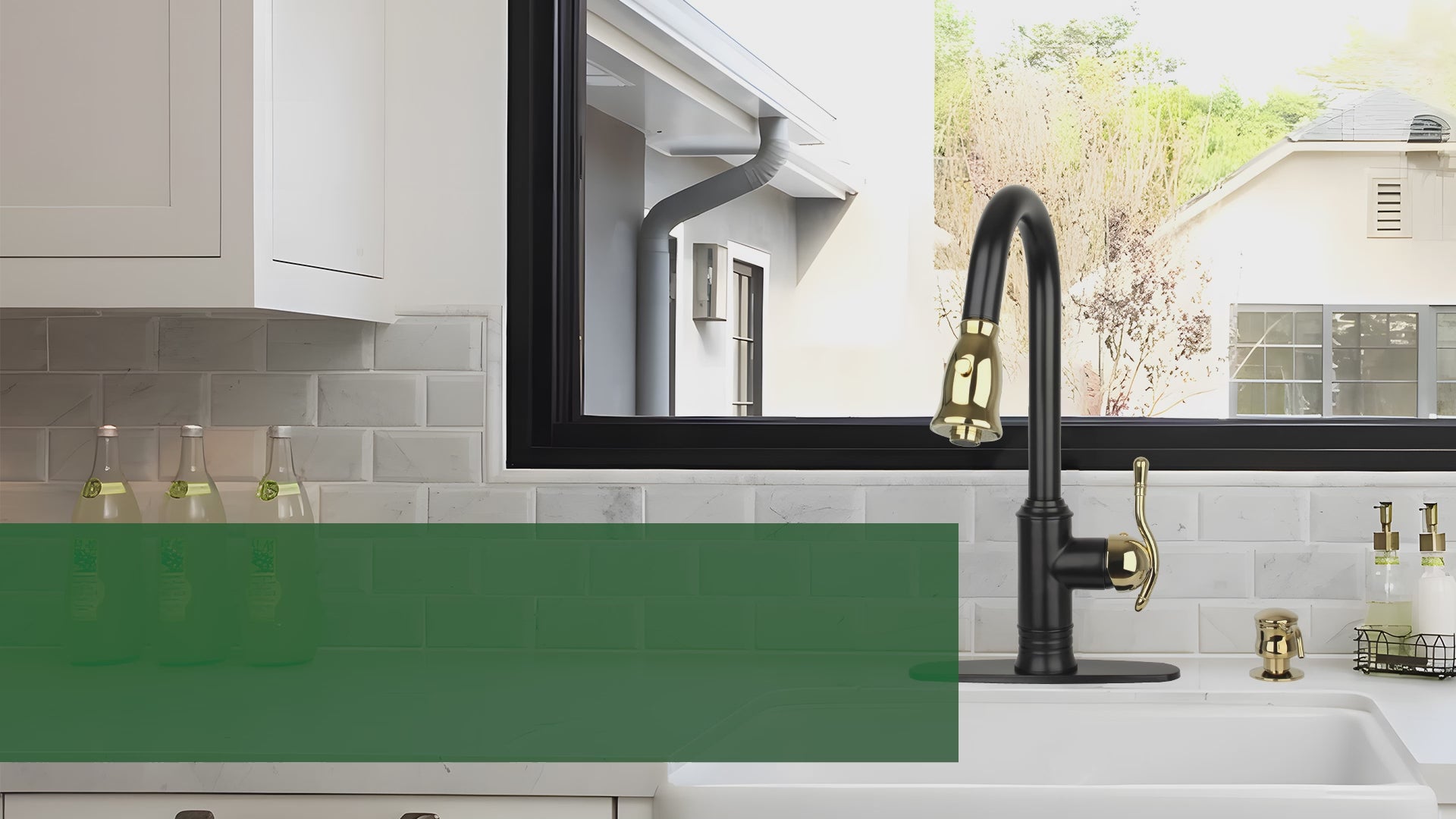 Two-Tone Matte Black & Gold Pull Out Kitchen Faucet with Deck Plate, Single Level Solid Brass Kitchen Sink Faucets with Pull Down Sprayer - AK415BLZG